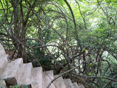 古藤为藤黄檀衍生藤蔓。古藤缠天绕地蛇龙变幻,覆满山岗。夏如华盖蓊郁蔽日,憩息藤园观景,怡心悦目。